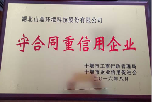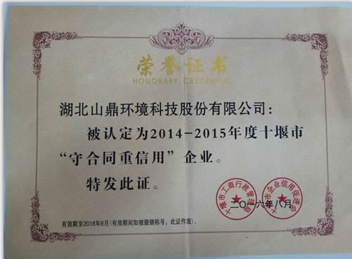 祝贺招标获评由十堰市工商行政管理局、十堰市企业信用促进会颁发的(2014—2015年度)“守合同重信用”企业荣誉证书。